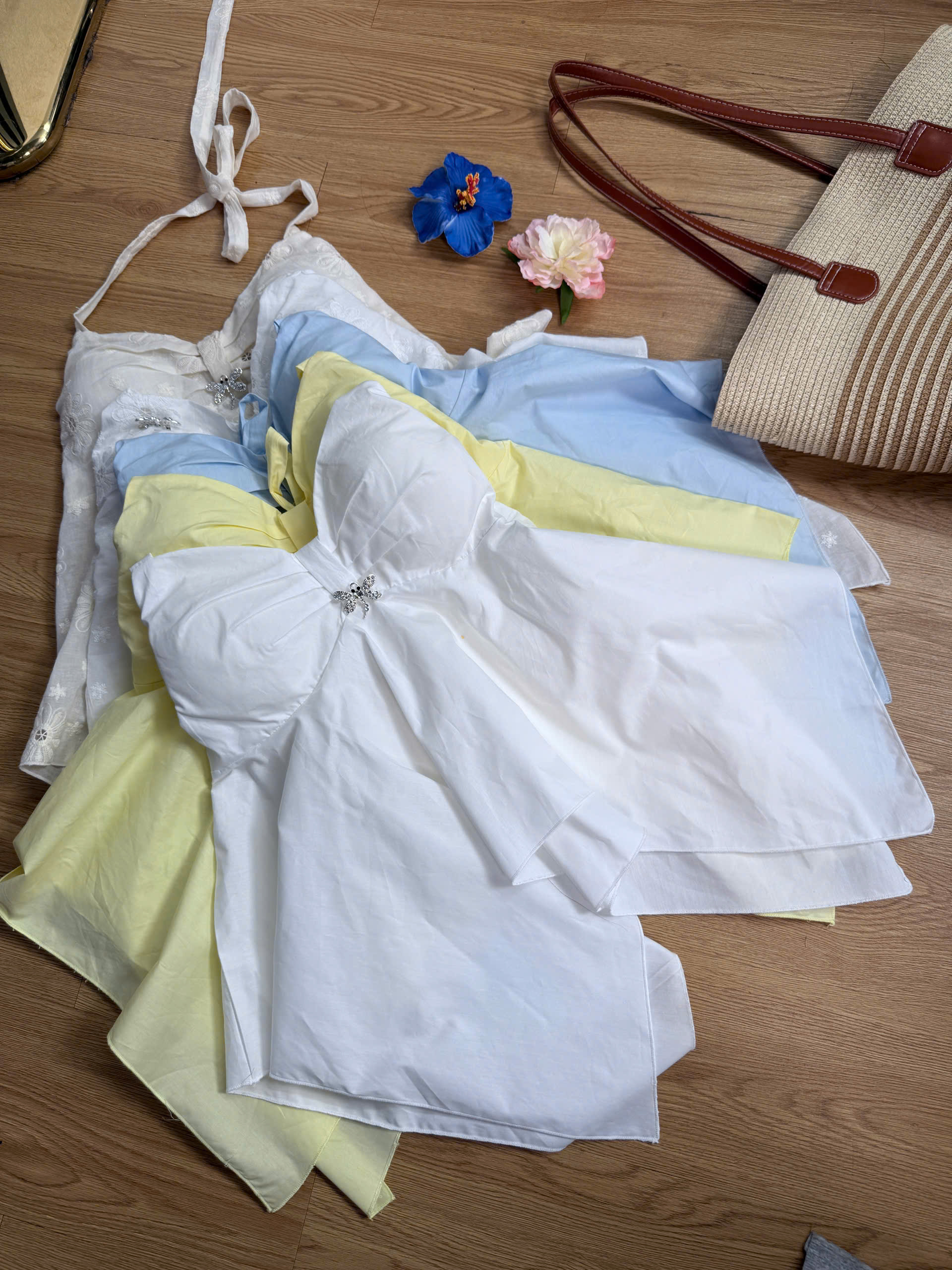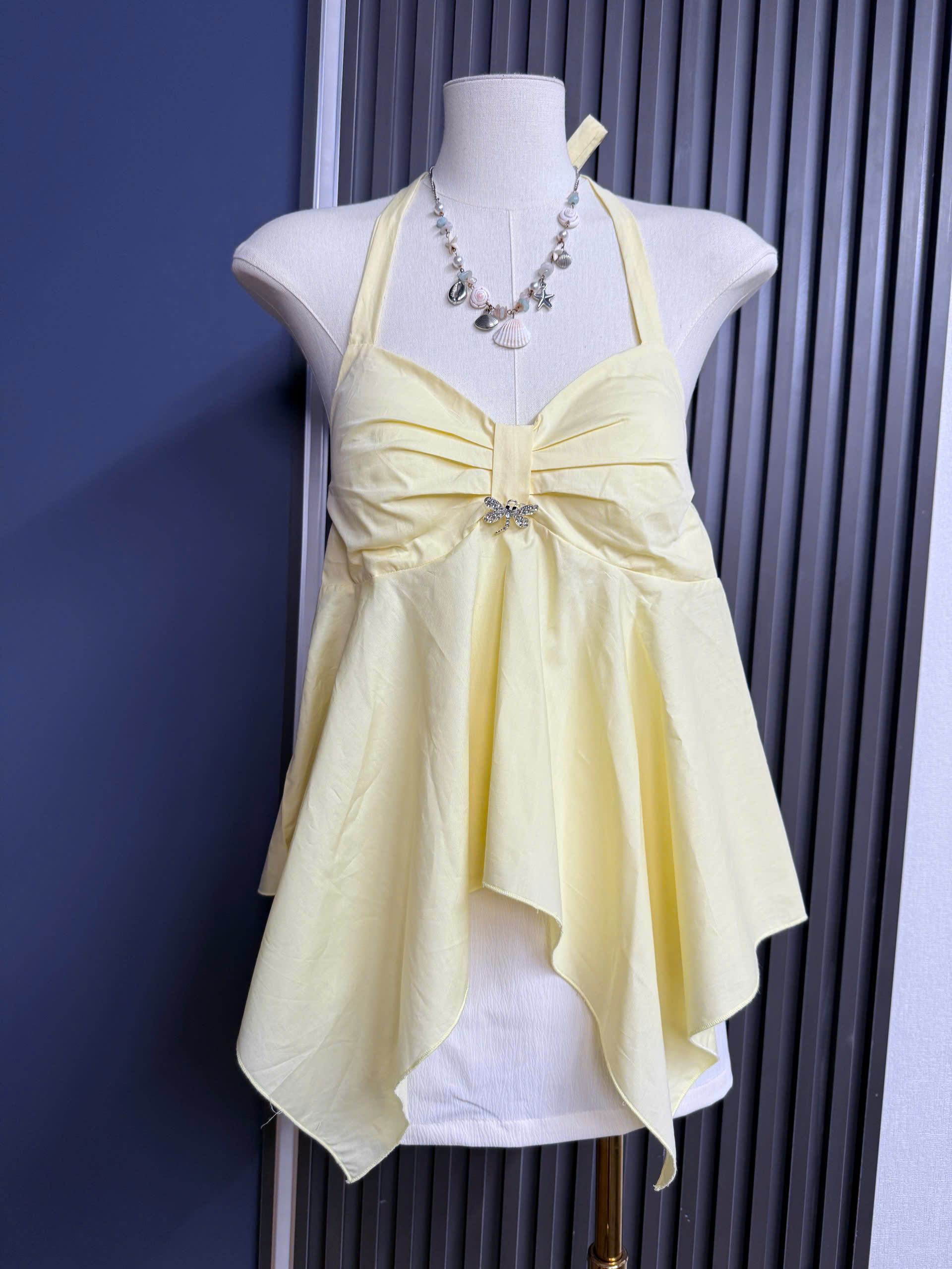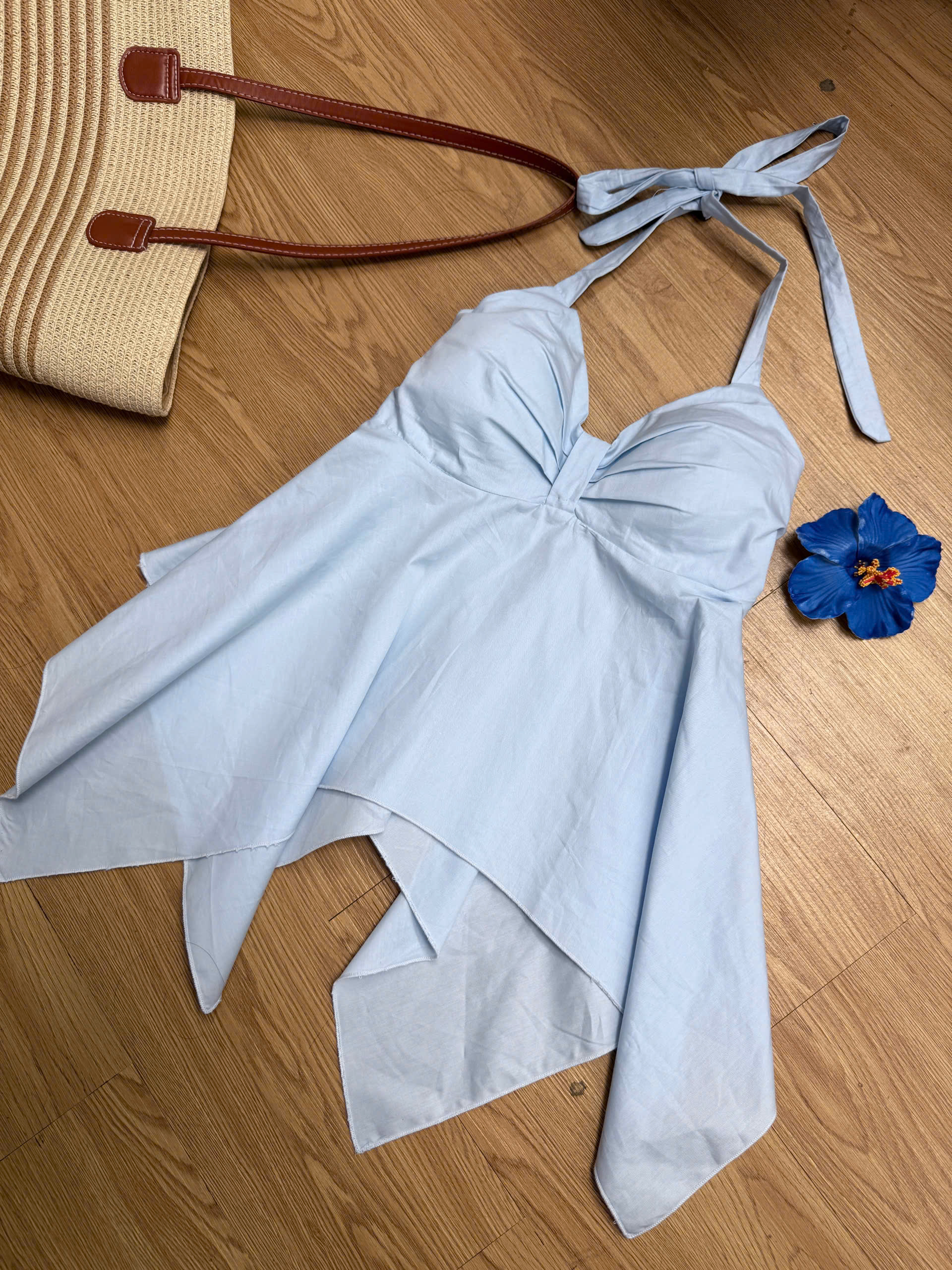 Kiểu dáng: Áo yếm buộc cổ, form xòe nhẹ