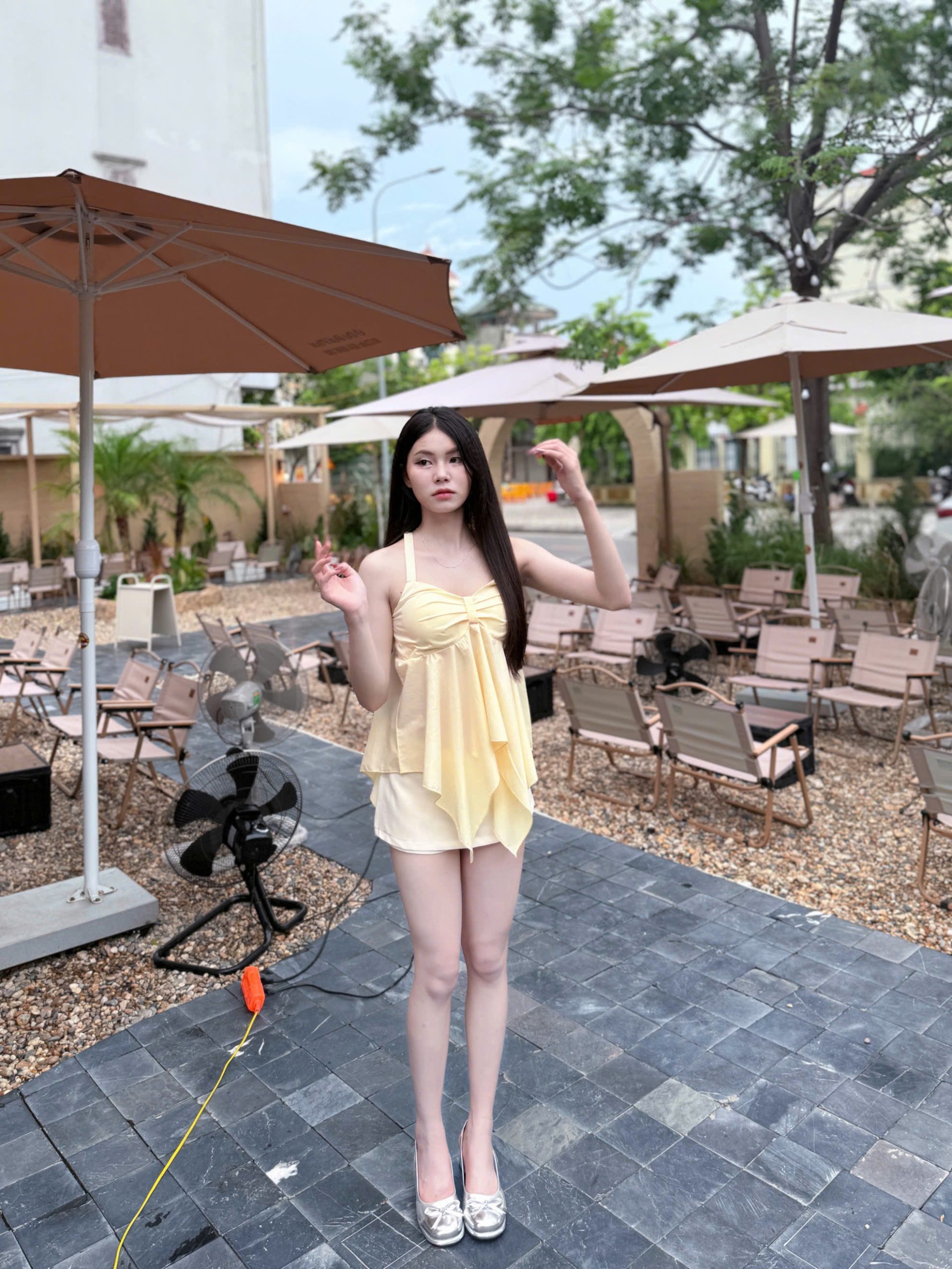 Áo yếm cột dây thiết kế buộc cổ tôn vai, form xòe nhẹ giúp che khuyết điểm vòng hai, chất vải mềm mại thoáng mát, mang lại cảm giác dễ chịu khi mặc. Sản phẩm phù hợp để diện đi chơi, dạo phố hoặc du lịch trong những ngày hè năng động.
